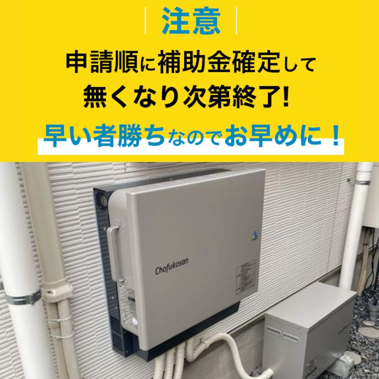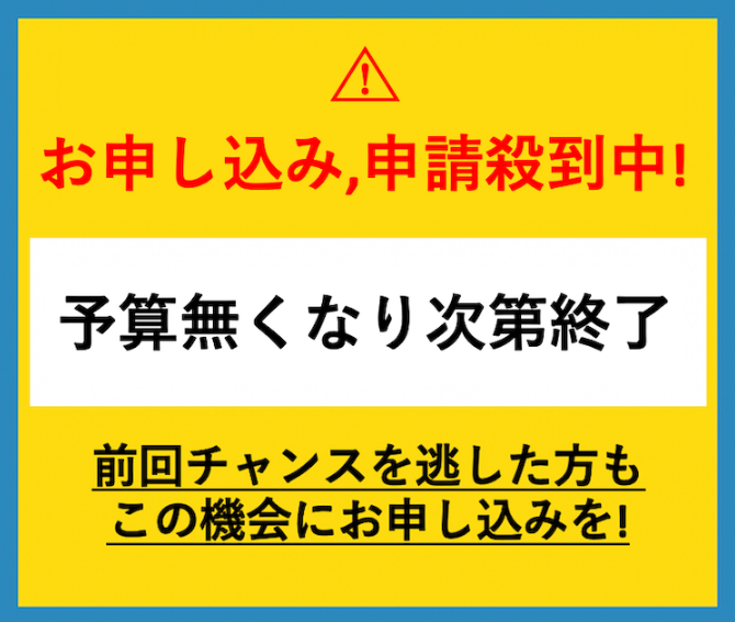 ただこの補助金は申請順に確定し、無くなり終了になってしまうので早い者勝ちなんです。