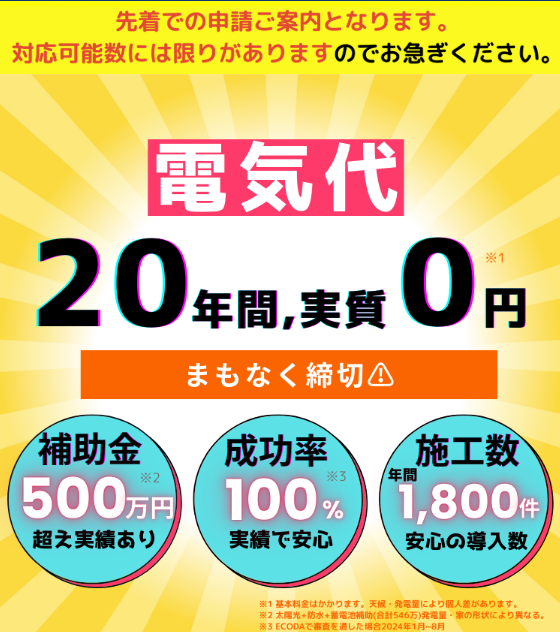 【東京都限定】電気代実質0円生活※1に⁉実質自己負担0円※2で蓄電池を自宅に設置できる都民限定の補助金が凄い…補助金500万円越え※3実績も!
